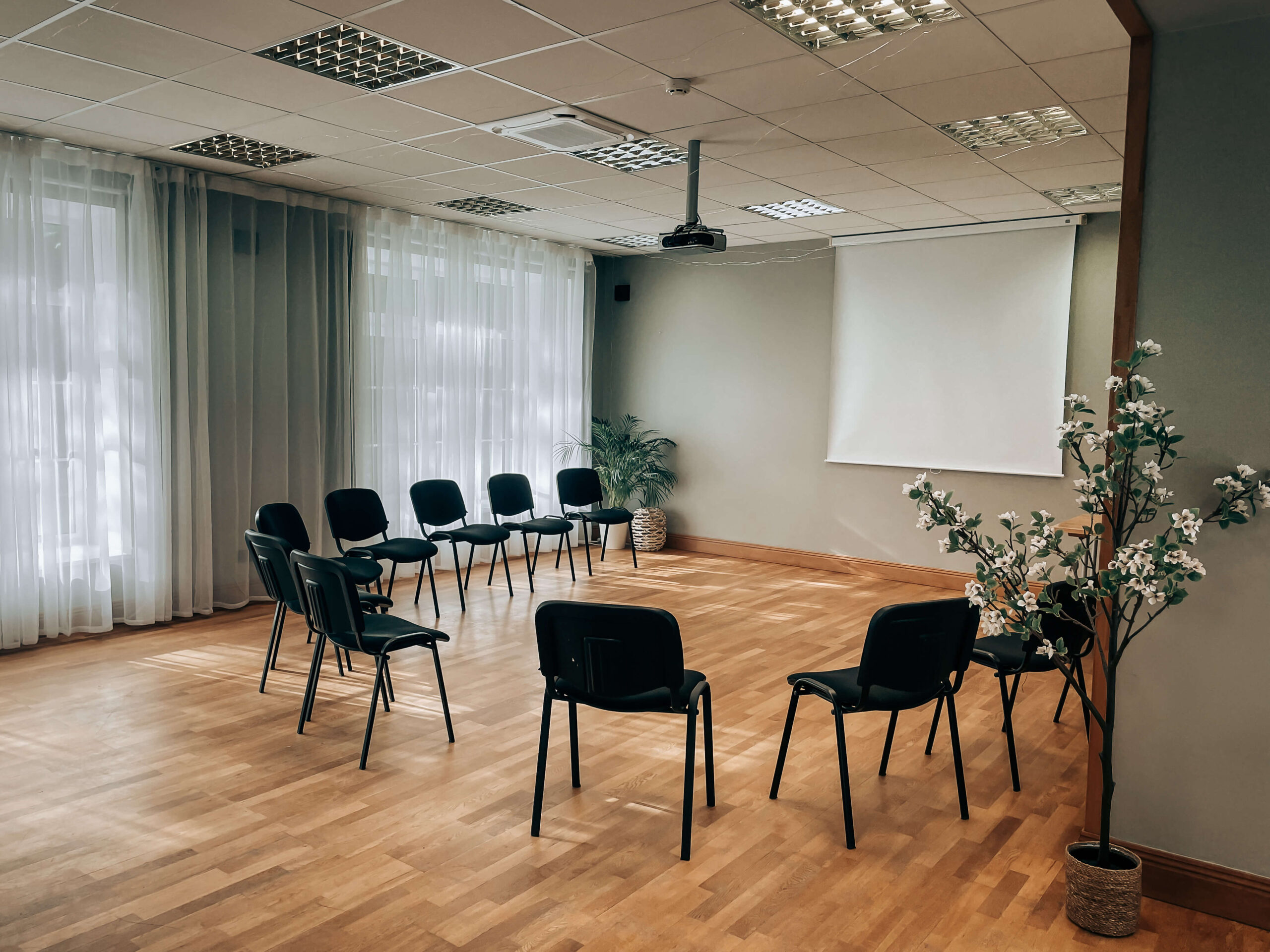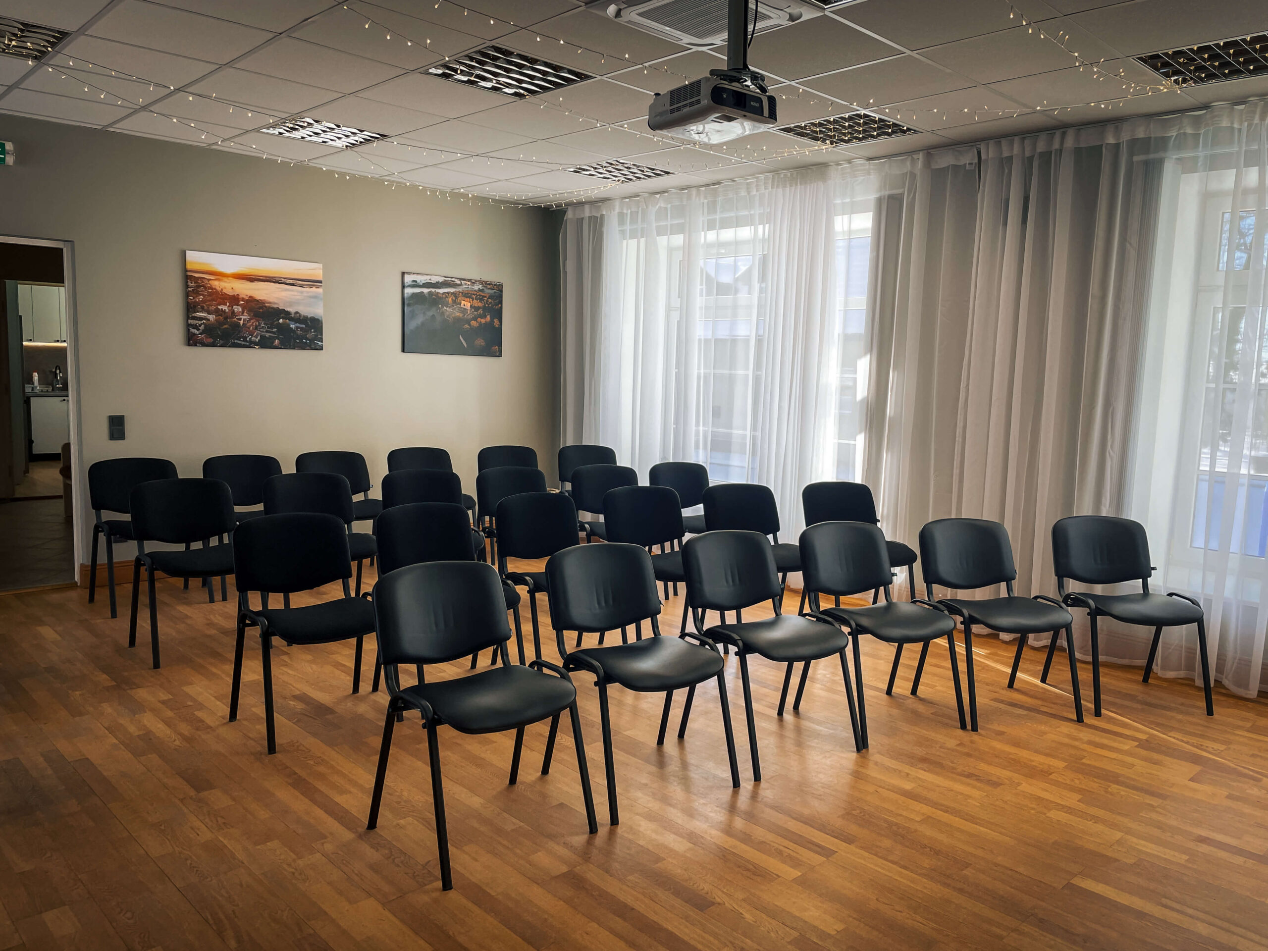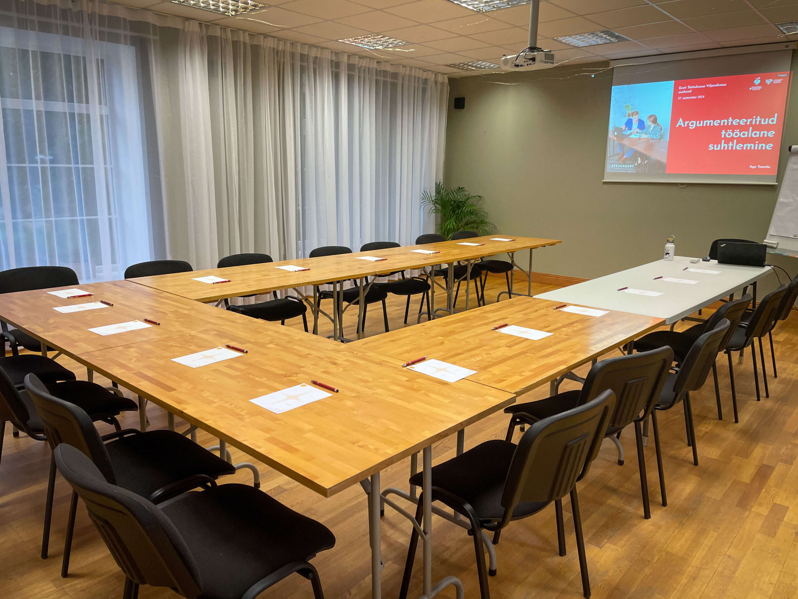Meie seminariruum on täisvarustatud kaasaegse tehnoloogia, kliima- ja ventilatsioonisüsteemidega, tagades mugavad tingimused igaks sündmuseks. Ruumis on täiskasvanutele mõeldud lauad ja pehmed toolid, mis muudavad istumise mugavaks ja toetavad pikkade koolituspäevade läbiviimist.