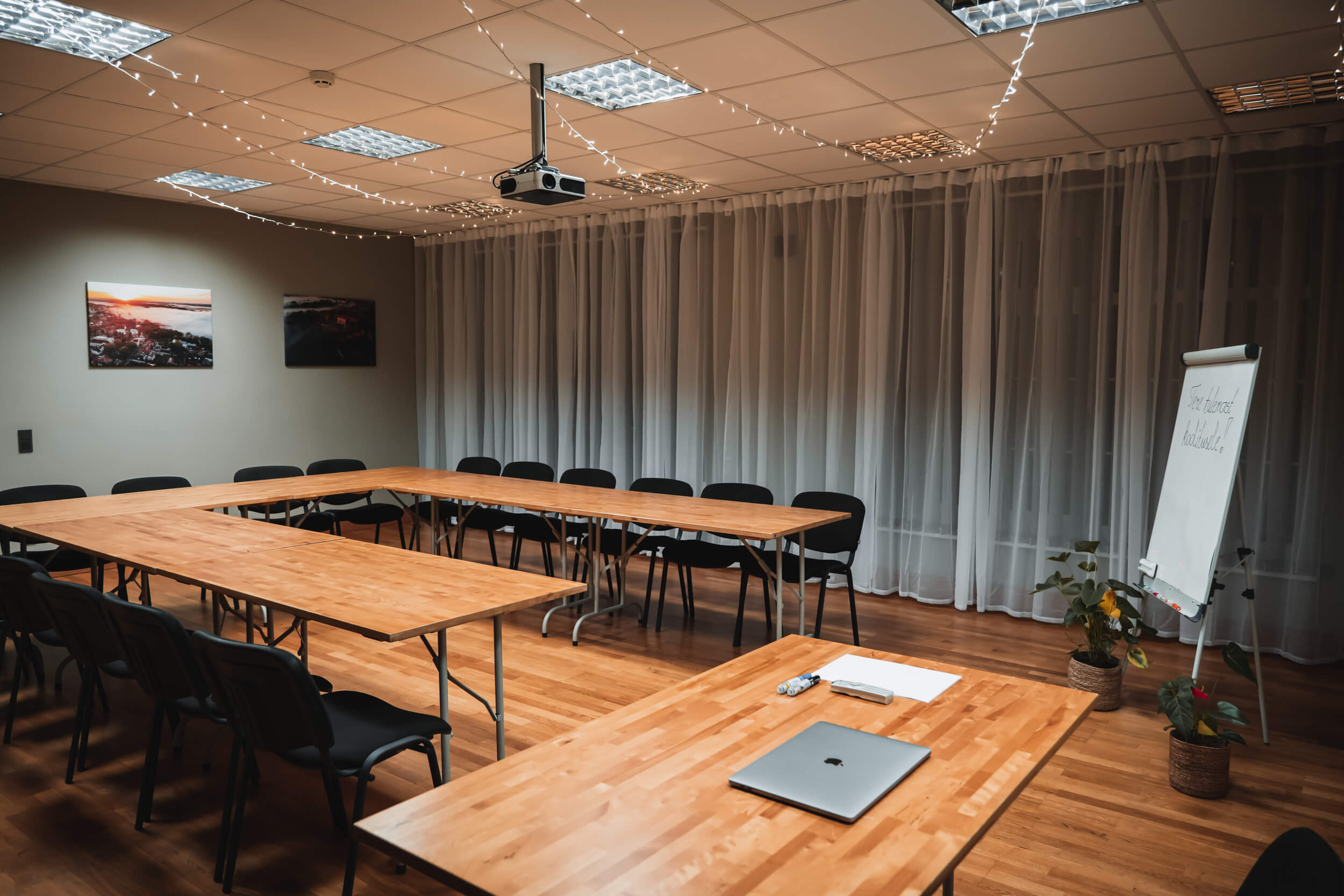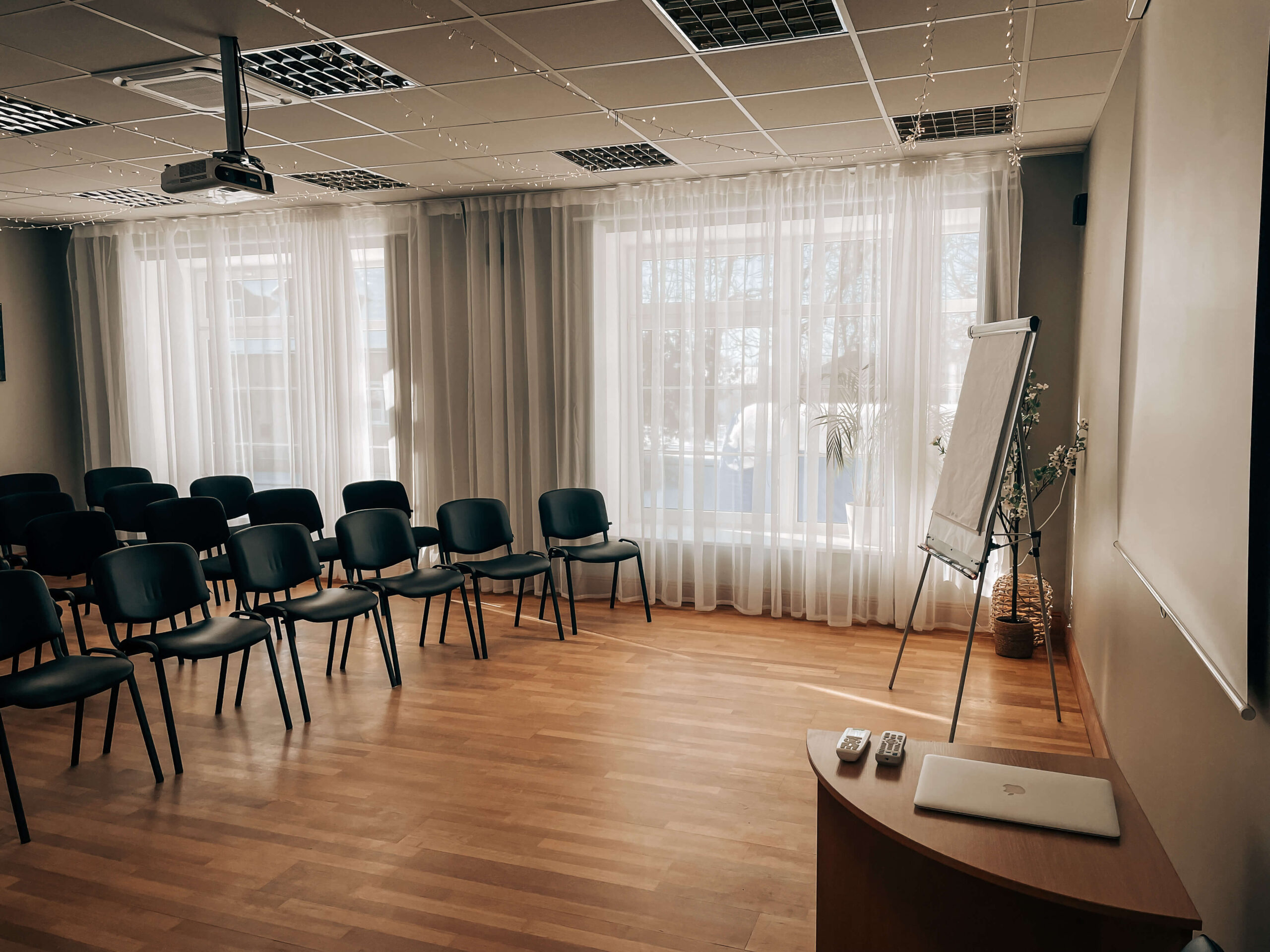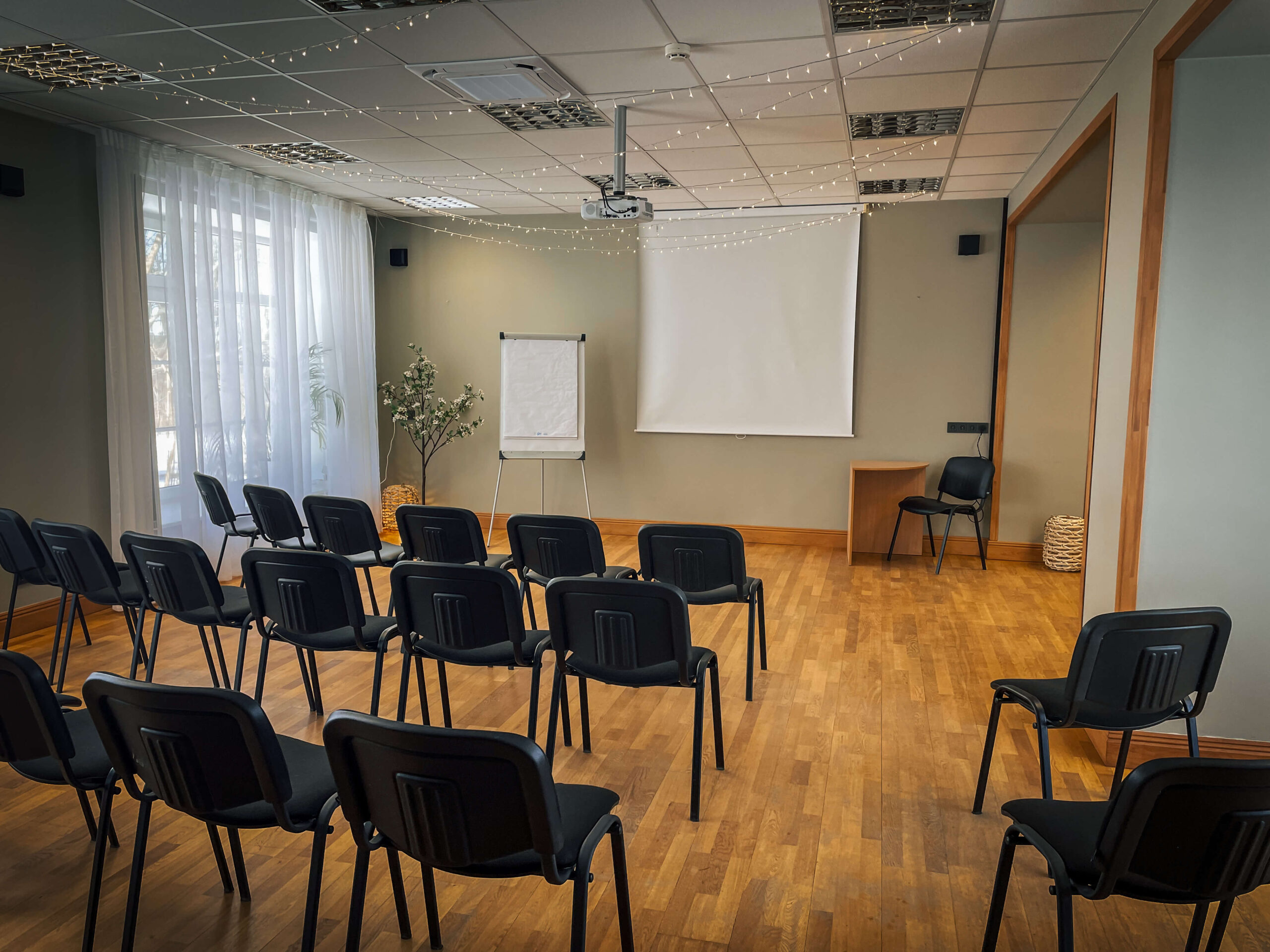 Meie seminariruum on täisvarustatud kaasaegse tehnoloogia, kliima- ja ventilatsioonisüsteemidega, tagades mugavad tingimused igaks sündmuseks. Ruumis on täiskasvanutele mõeldud lauad ja pehmed toolid, mis muudavad istumise mugavaks ja toetavad pikkade koolituspäevade läbiviimist.
